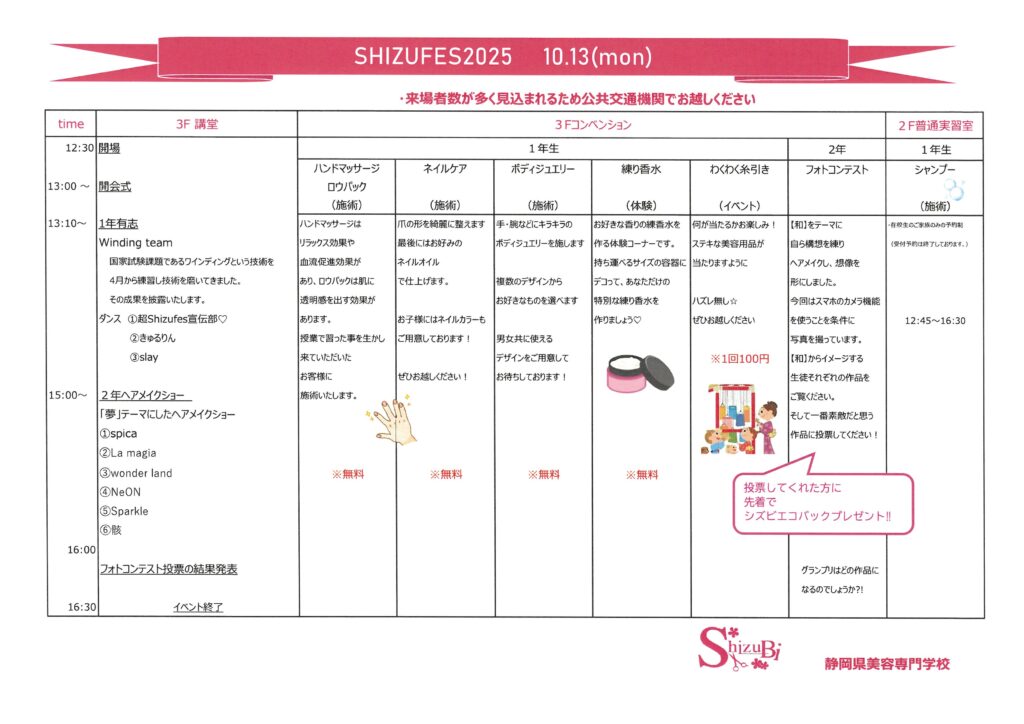 場所:静岡県美容専門学校(静岡市葵区春日2丁目4番10号)